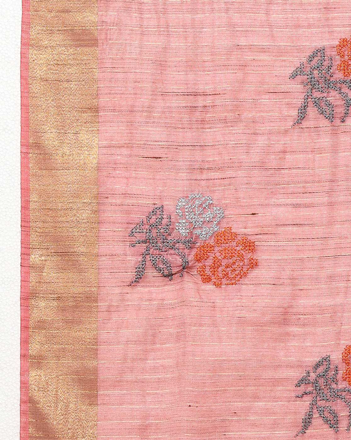 * Finally, traditional hand embroidery work is added to highlight motifs, borders, or pallus.