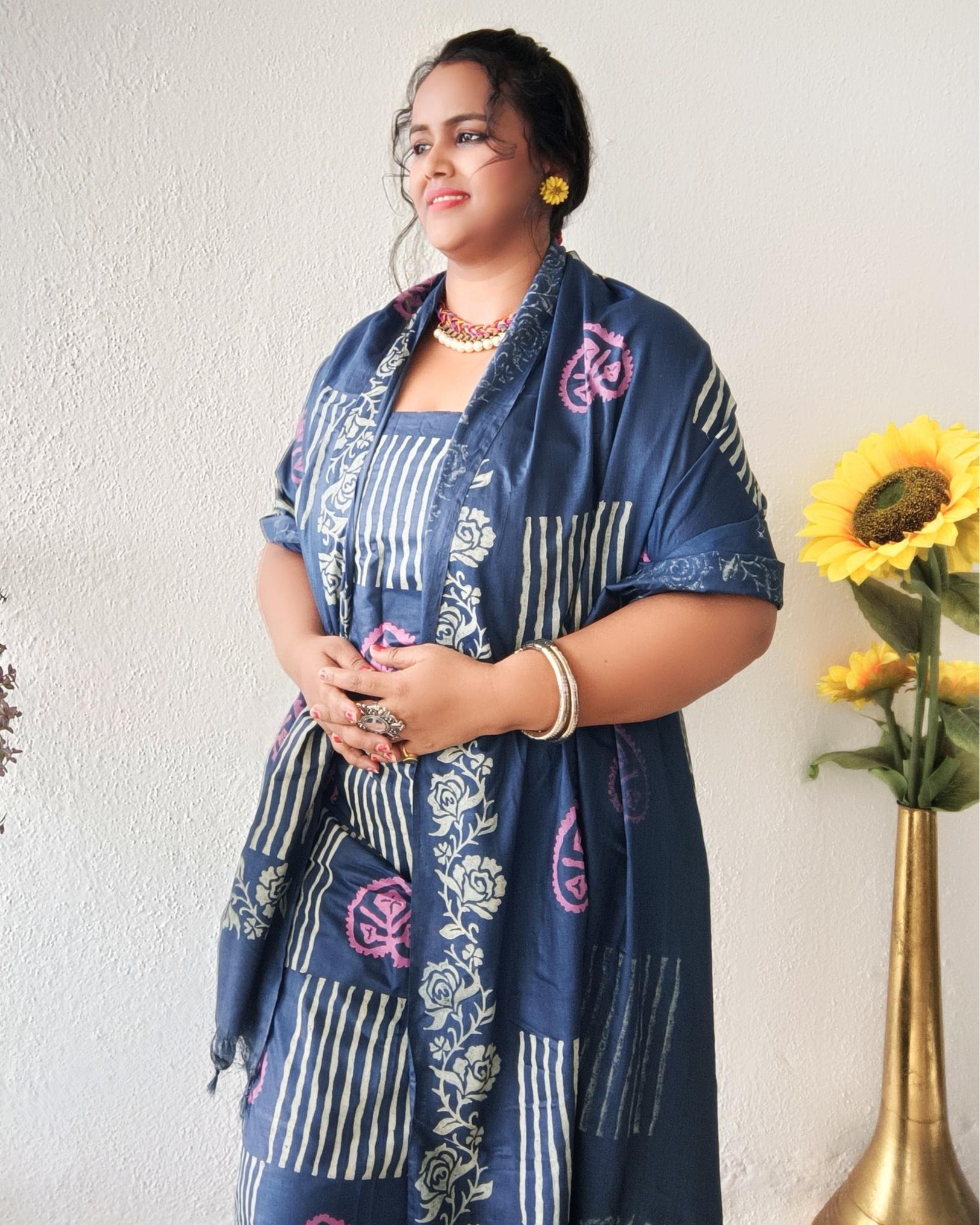 Celebrate tradition with our Handcrafted Katan Silk Blockprint Suit. Merging the richness of Kata... Read more