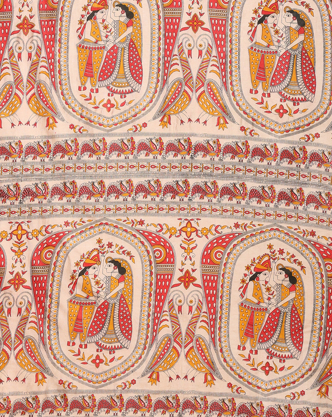 Pastoral Katan Silk Madhubani Beige Suit