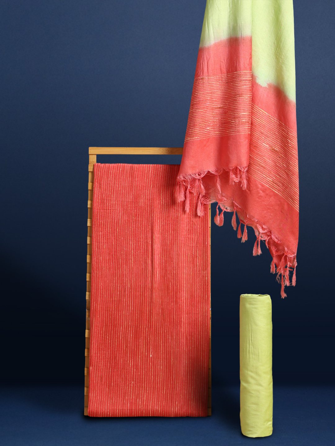 A Katan Silk Suit Piece is handcrafted with intricate weaving techniques using pure silk threads. Each piece showcases meticulous craftsmanship and exquisite designs.
