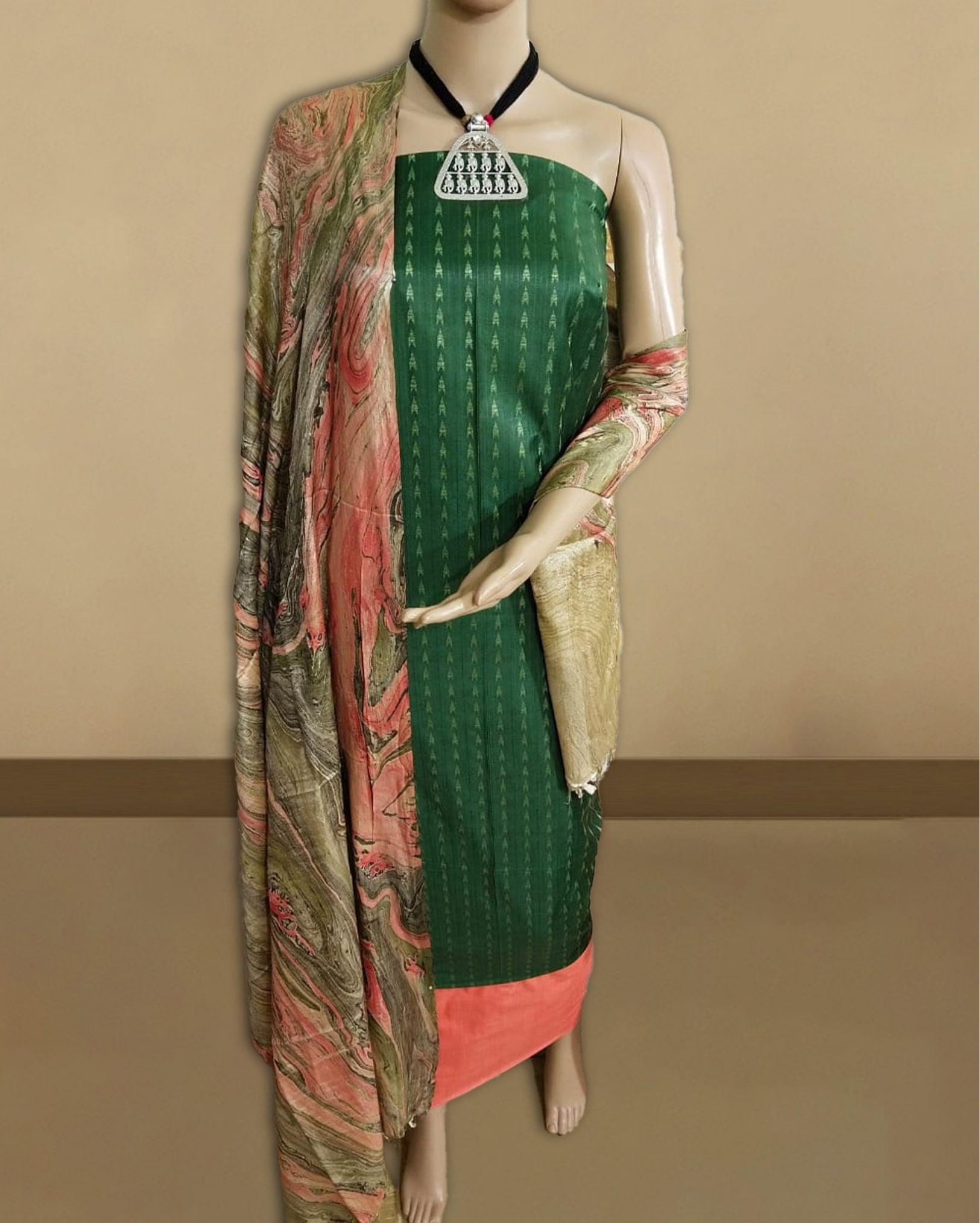 Make a style statement with our Handcrafted Katan Silk Abstract Tie Dye Suit. Featuring abstract ... Read more