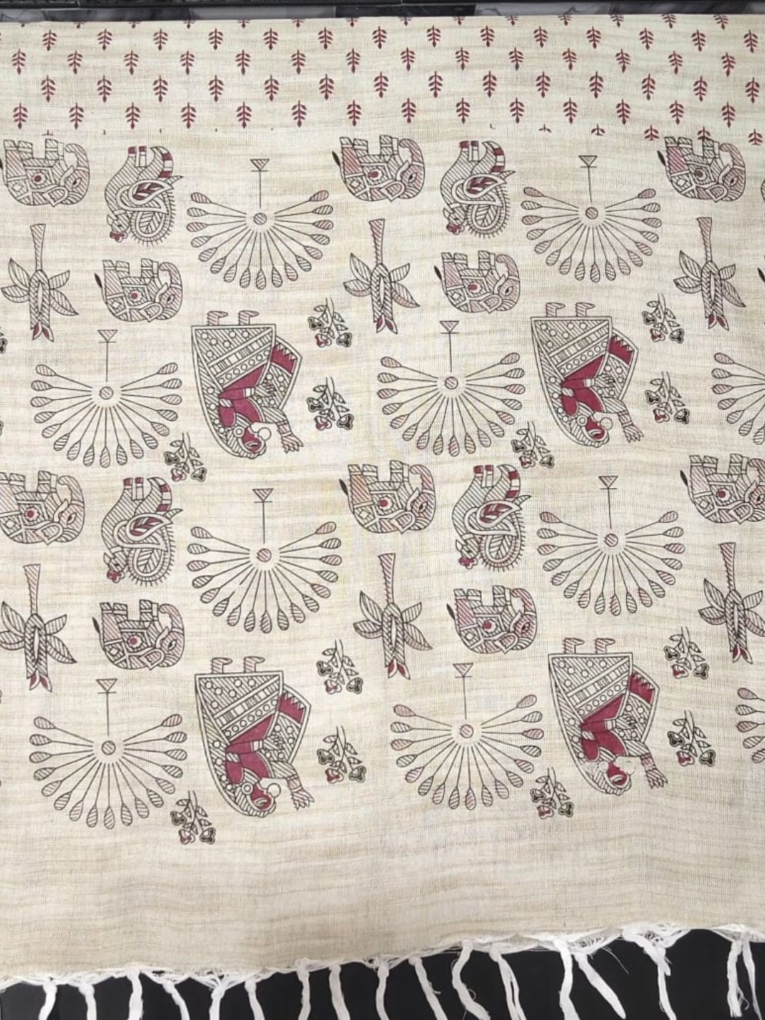 -The fabric is then hand block printed or screen printed with Madhubaniinspired motifs.