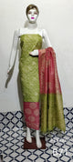 Katan Silk Stunning Blockprint Olive Green Suit