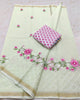 Step into elegance with our Handcrafted Floral Embroidery Kota Doria Saree. Intricately embroidered with delicate floral motifs on lightweight Kota Doria fabric, each saree exudes grace and sophistication, perfect for special occasions.