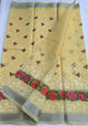 Ethnic Kota Doria Cotton Floral Embroidery Saree Beige