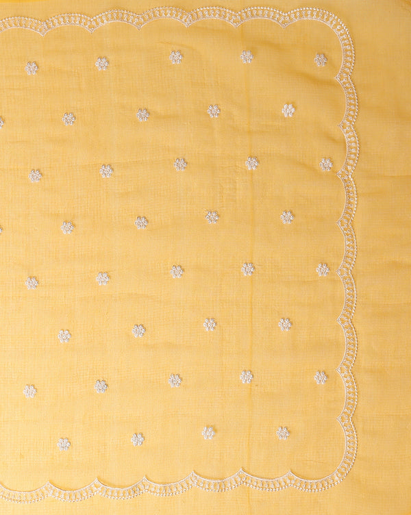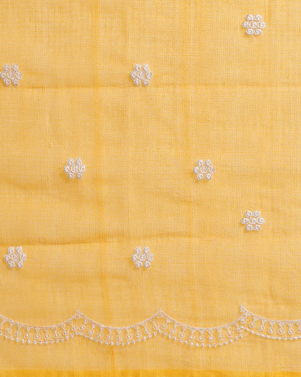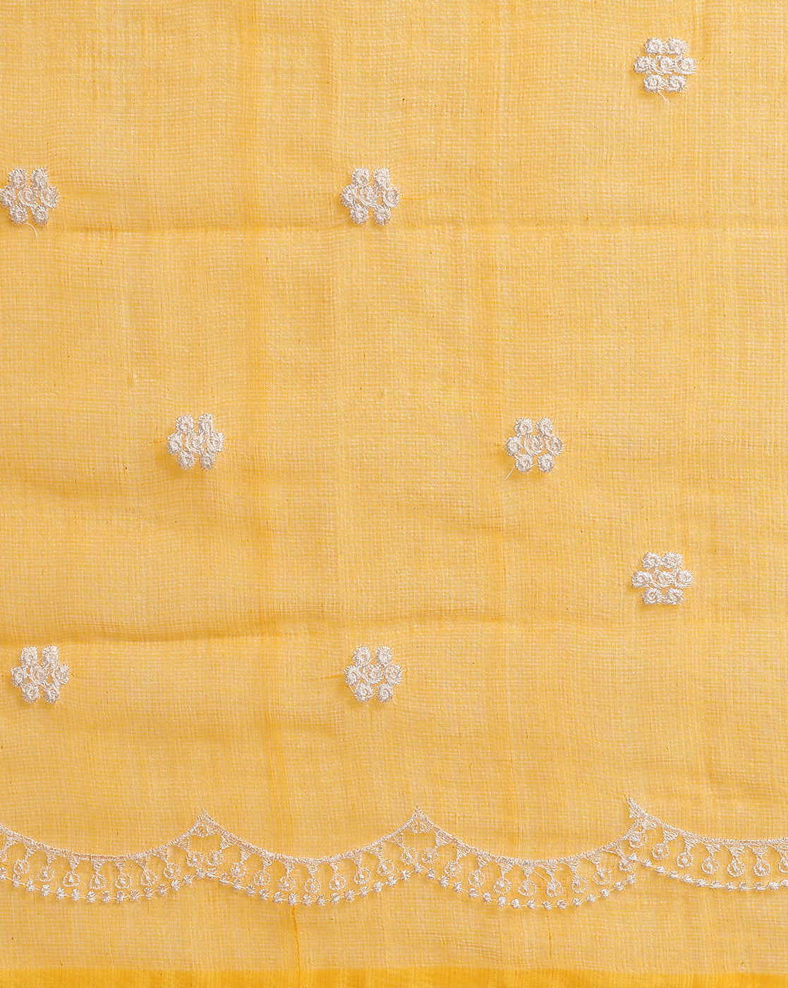 Kota Doria Sarees Embroidery Work Bright Yellow