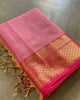 Deep Blush Pink Pure Silk Kota Doria Handdyed Saree