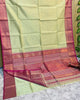 The Tissue Silk used in this saree refers to a lightweight and sheer fabric, characterized by a gossamer appearance. It has a subtle sheen and delicate texture, making it ideal for special occasions.