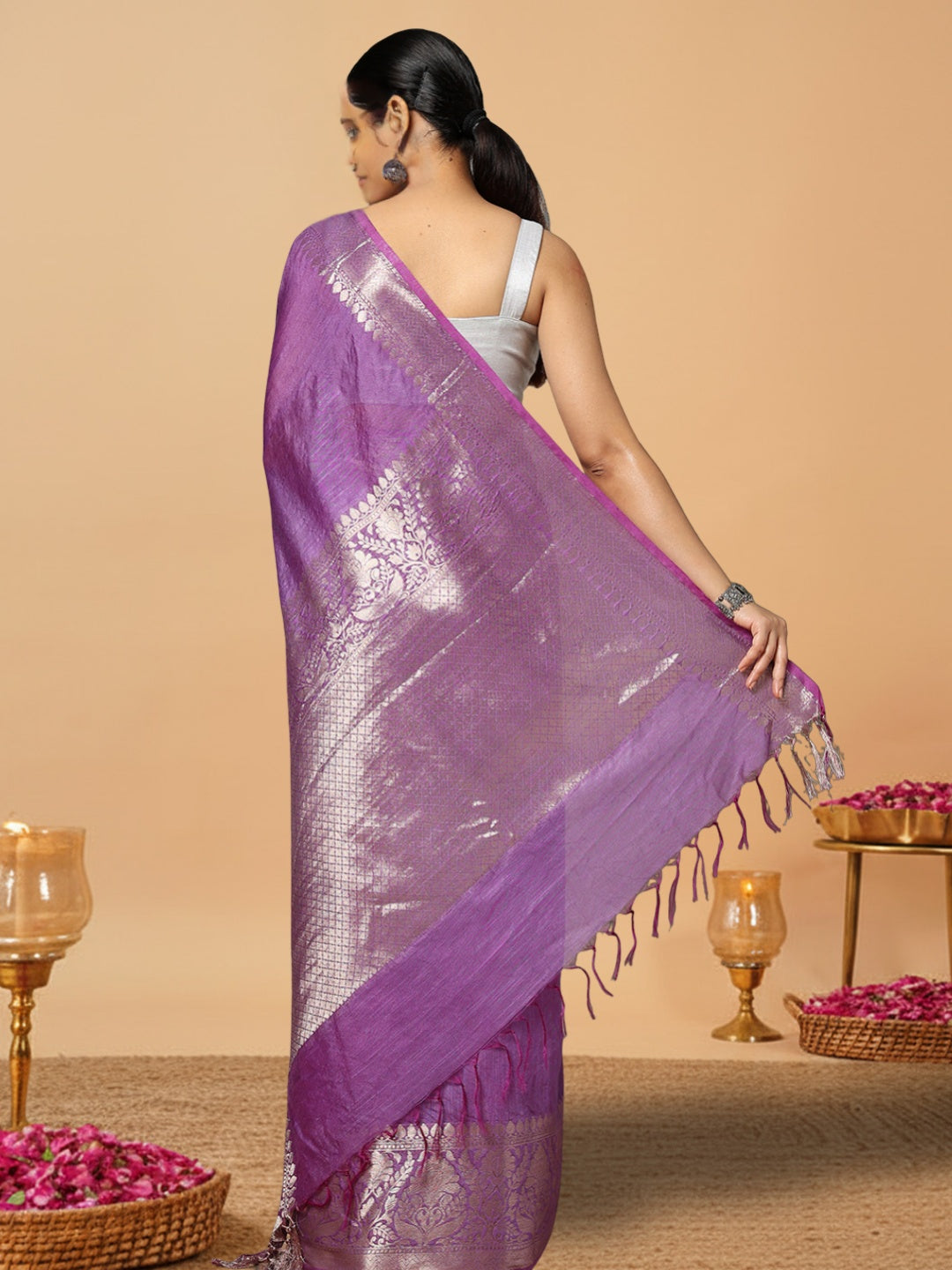 Expressive Banarasi Silk Linen Handloom Purple Saree