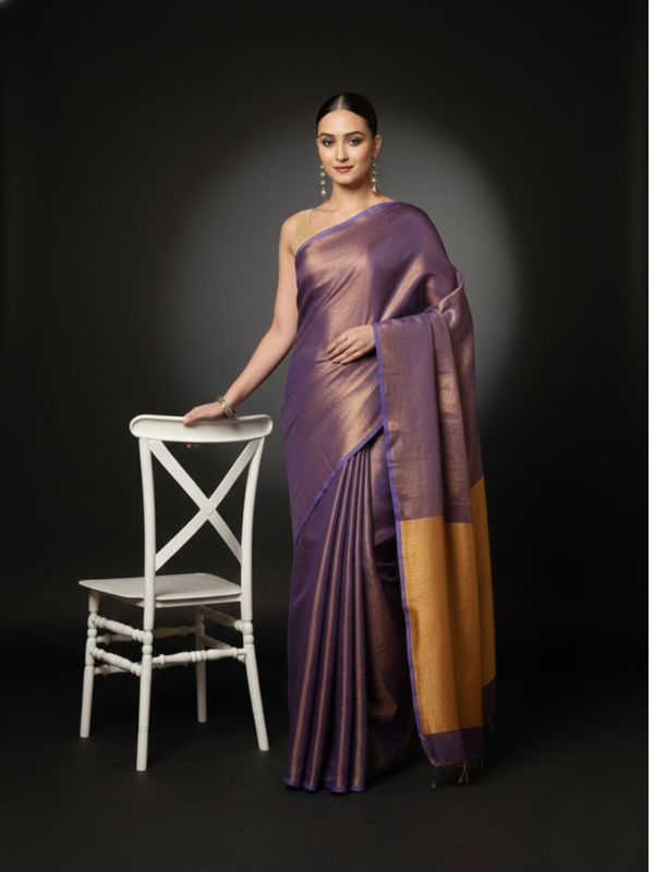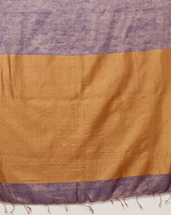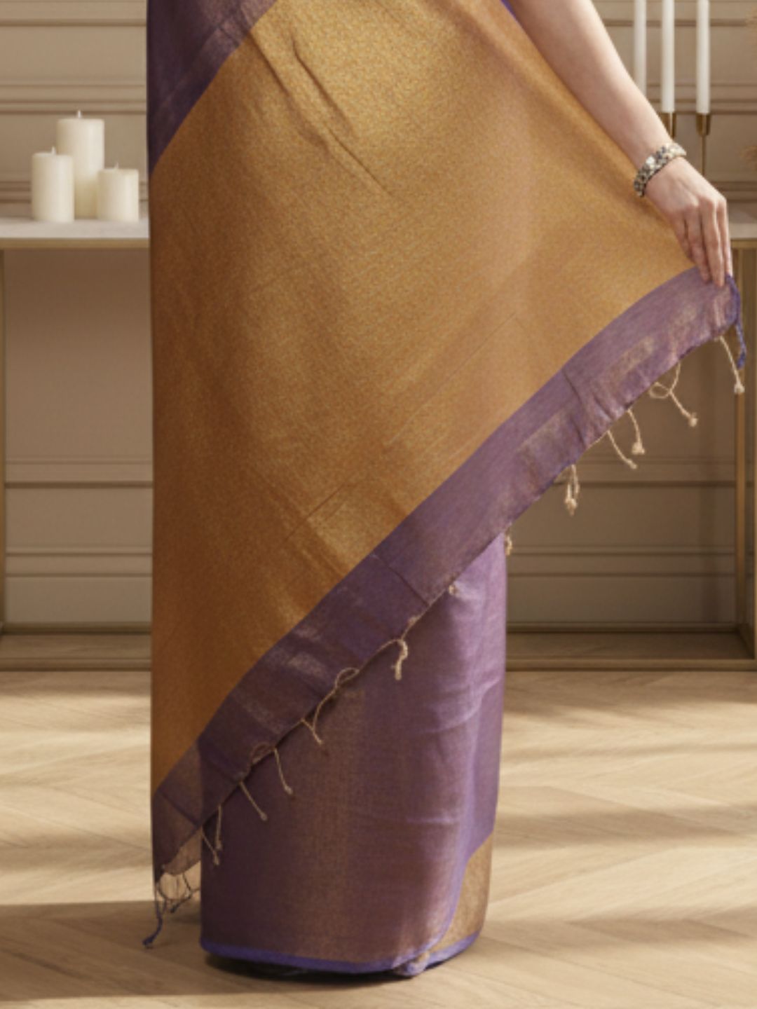 Tissue Linen Purple Saree Gold Shimmer Pallu