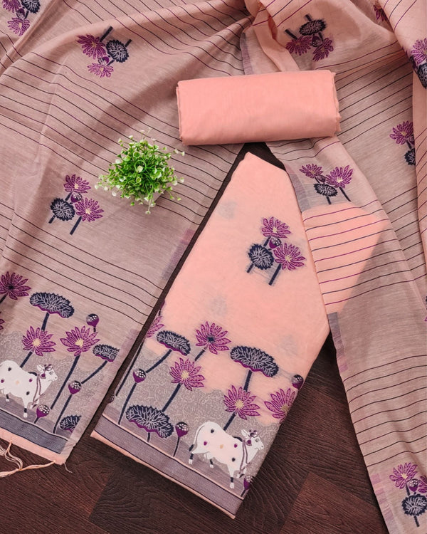 Elevate your ethnic wardrobe with our Banarasi Cotton Suit featuring exquisite brocade weaving, blending timeless tradition with contemporary elegance. Perfect for festive occasions, celebrations, and graceful everyday wear.
