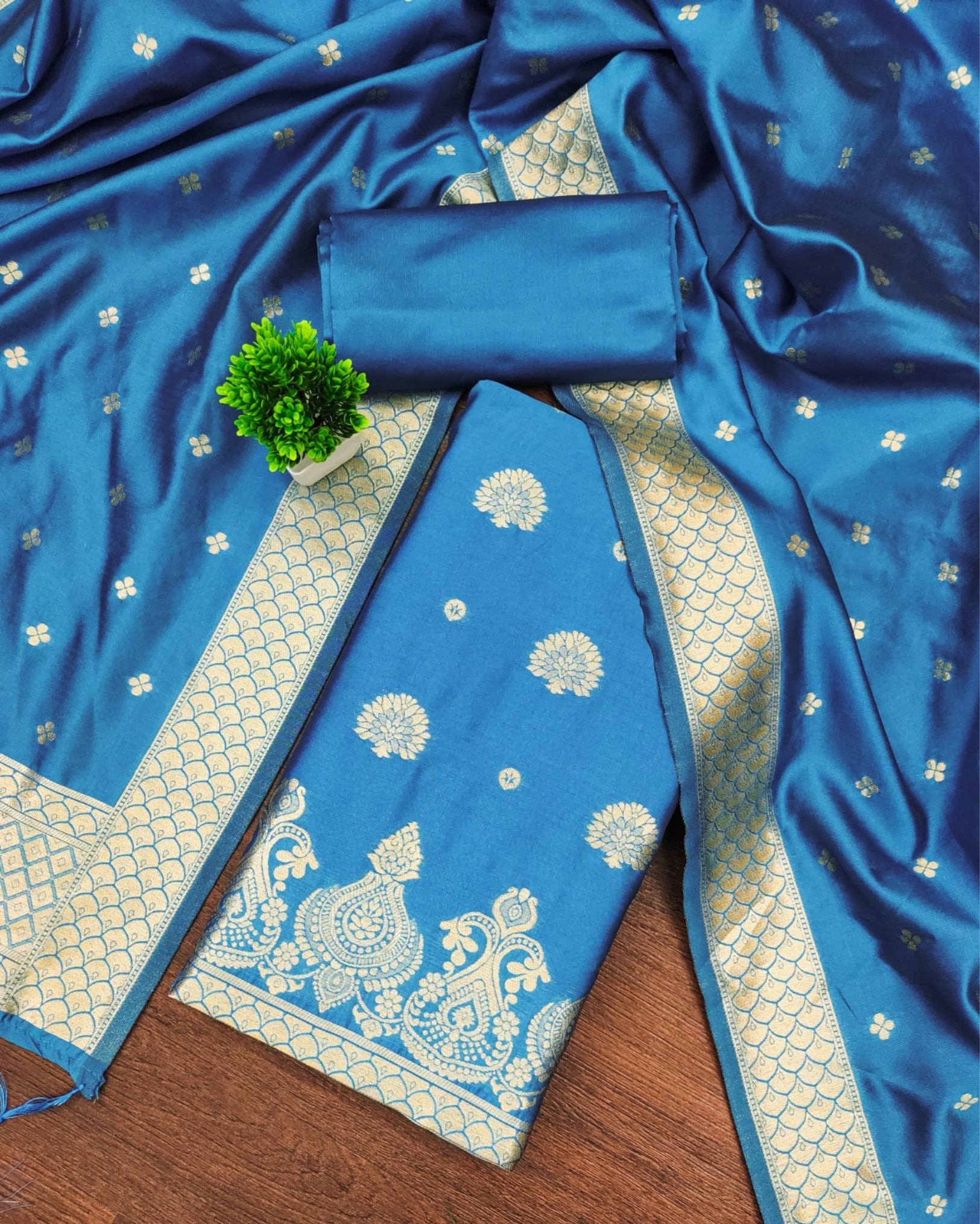 Noor-e-Banaras Brocade Lichi Silk Sky Blue Suit