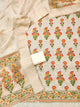 Graceful cotton suit set adorned with exquisite Banarasi brocade work, blending traditional artistry with modern comfort. Perfect for festive events or special occasions, this elegant attire radiates sophistication and cultural charm.