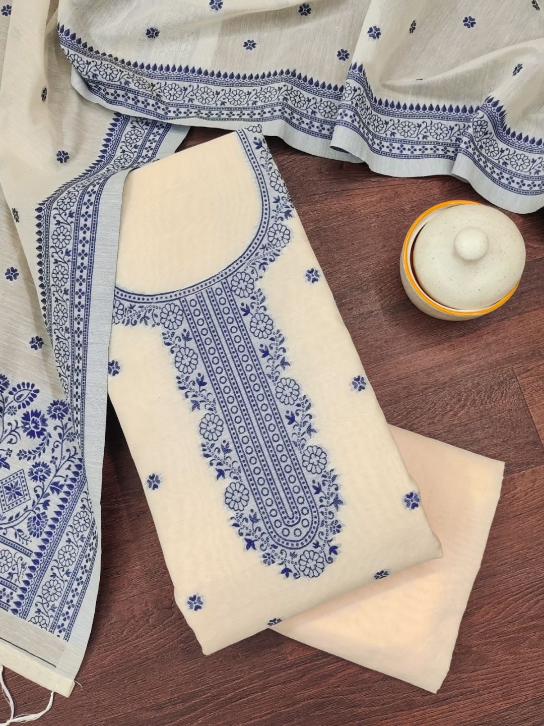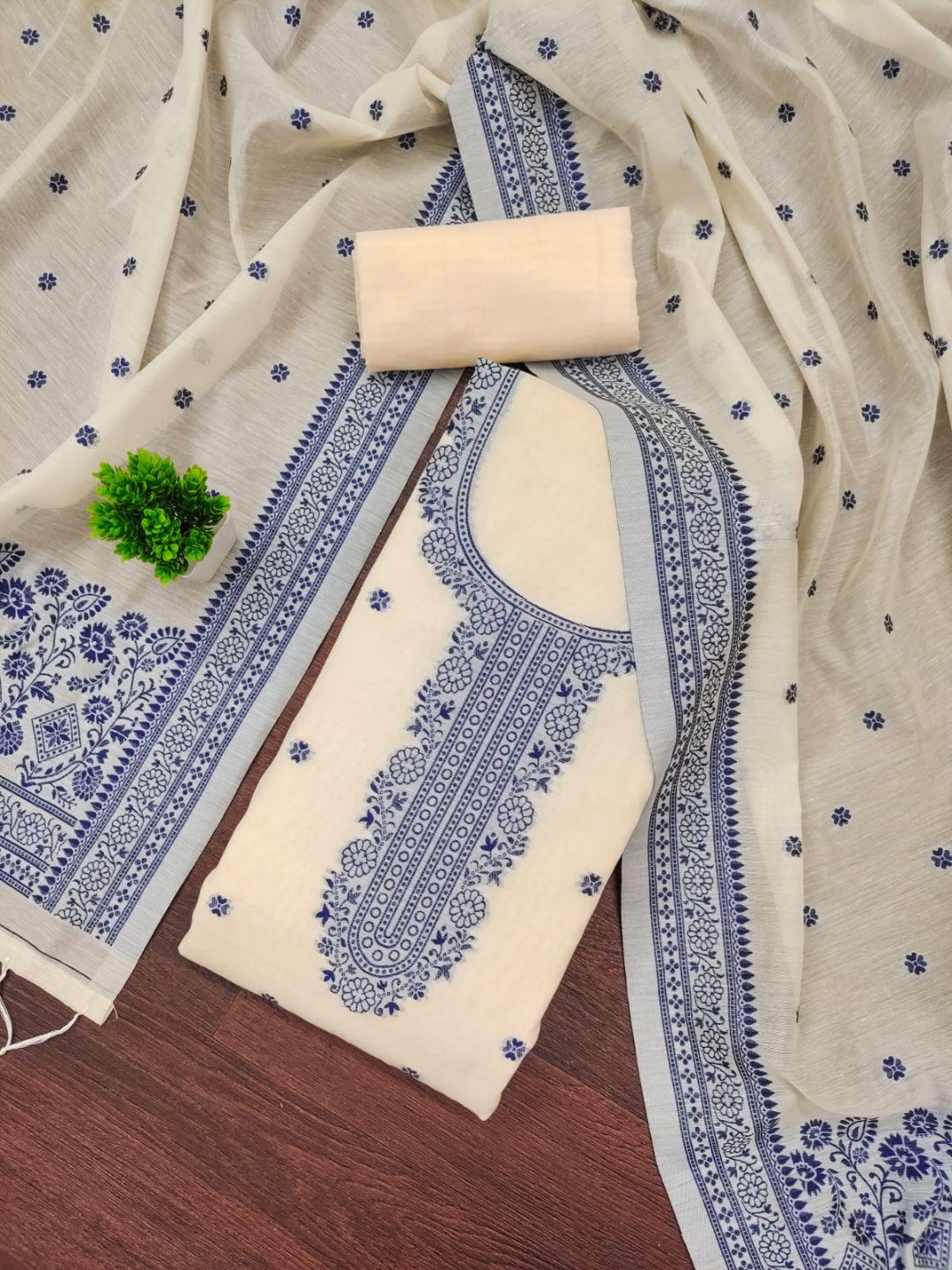 A Banarasi Cotton Brocade Weaving Suit is a traditional ethnic outfit made from soft cotton fabric intricately woven with Brocade patterns inspired by Banarasi artistry. It blends comfort, elegance, and fine craftsmanship, making it suitable for both festive and semiformal wear.