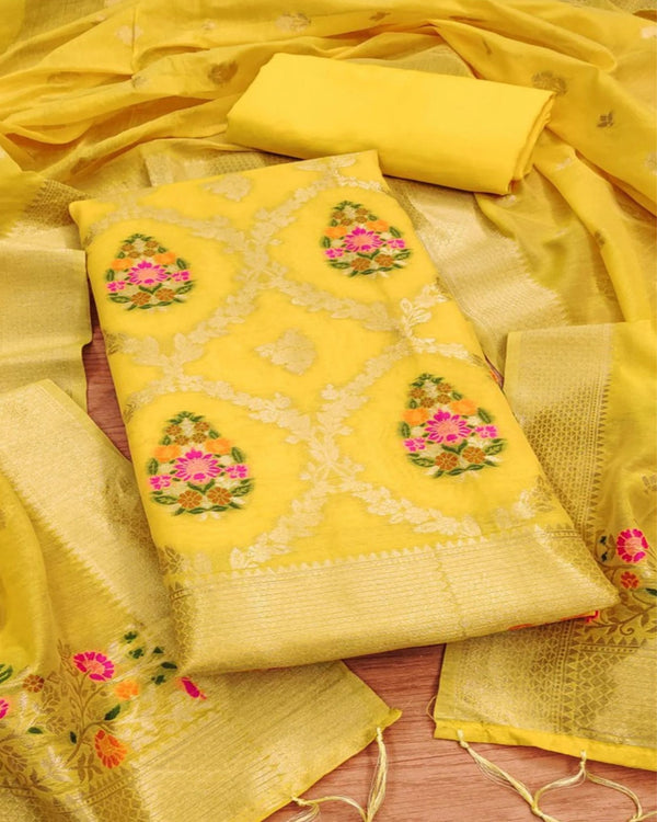 Noor-e-Banaras Yellow Brocade Weaving Cotton Suit