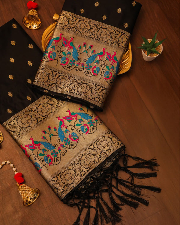 Noor-e-Banaras Zari Brocade Black Silk Suit