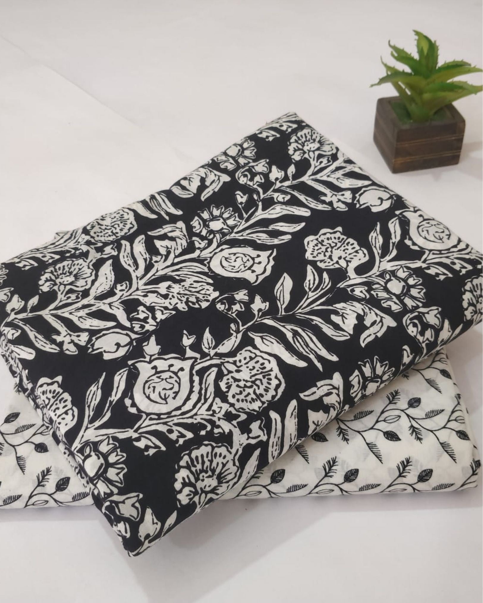 Chaap Pure Cotton Classic Black & White Blockprinted Suit (Top & Bottom)