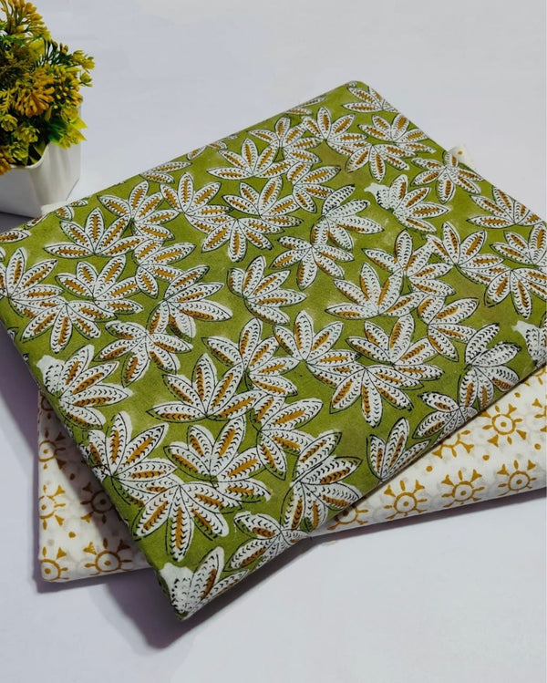 Chaap Pure Cotton Leafy Green Blockprinted Suit (Top & Bottom)