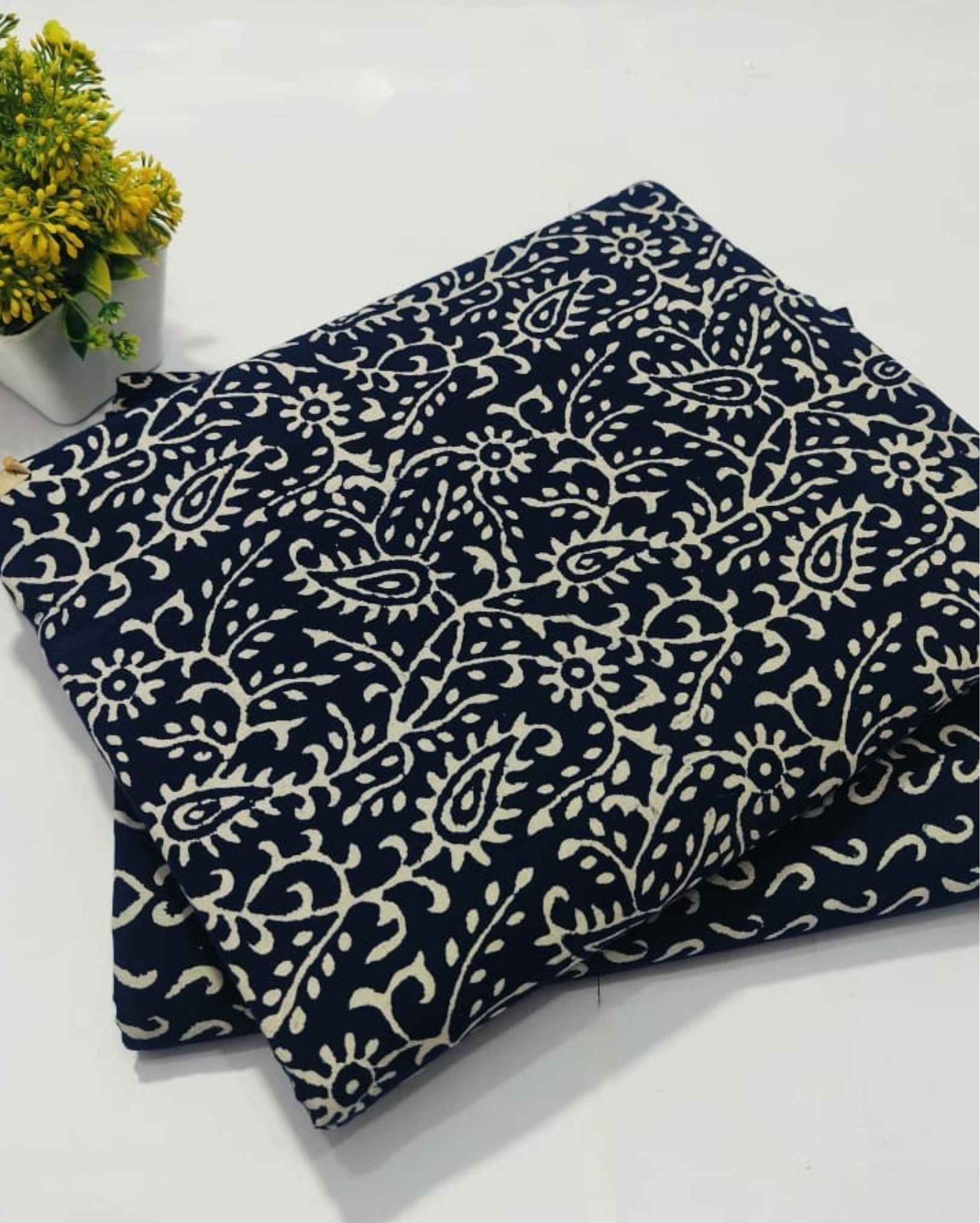 Adorn yourself in pure cotton handblock printed elegance: a top and bottom ensemble that blends intricate designs with serene comfort, perfect for celebrating special moments with grace and tradition.