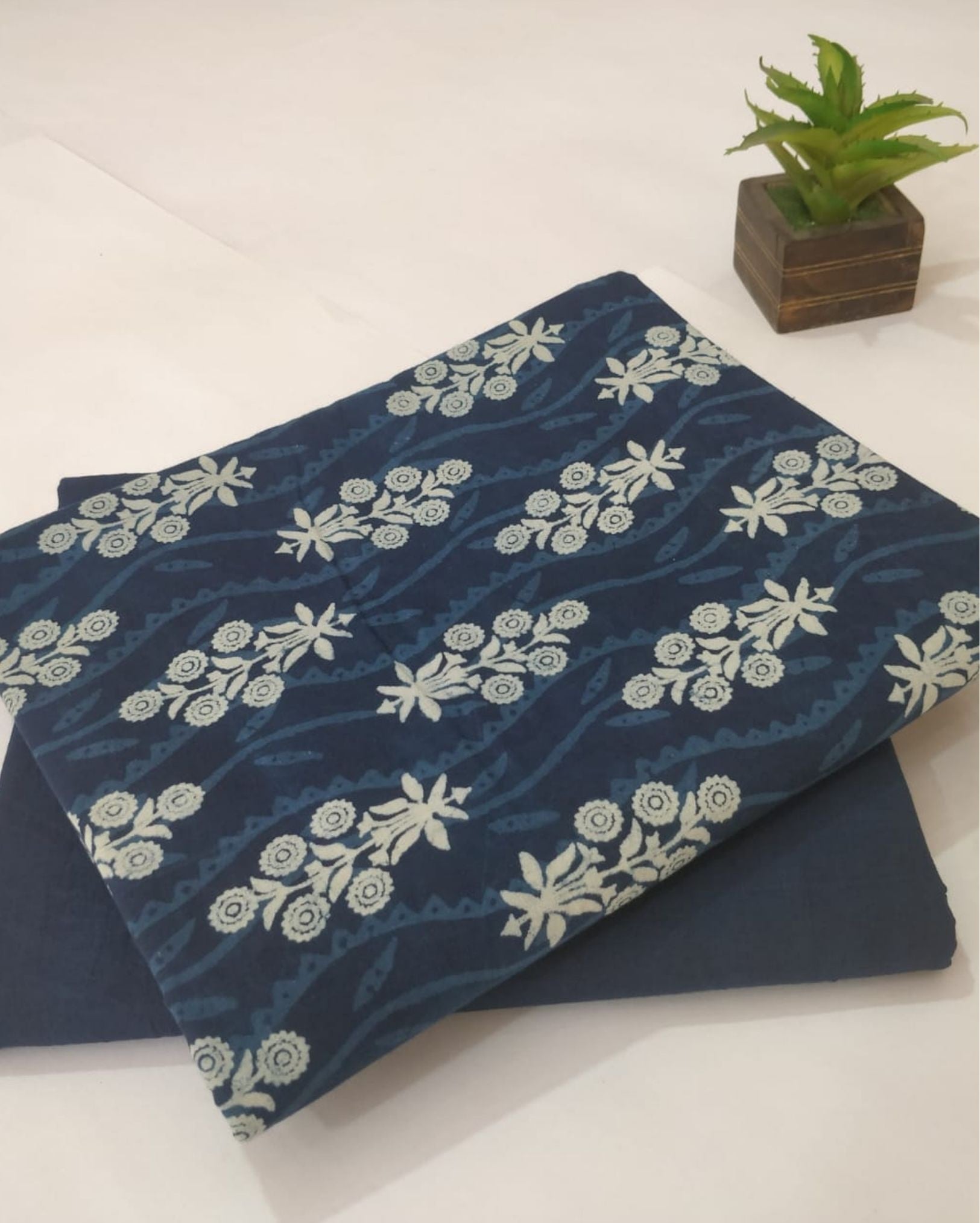 Adorn yourself in pure cotton handblock printed elegance: a top and bottom ensemble that blends intricate designs with serene comfort, perfect for celebrating special moments with grace and tradition.