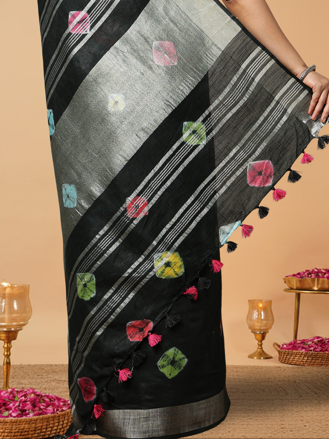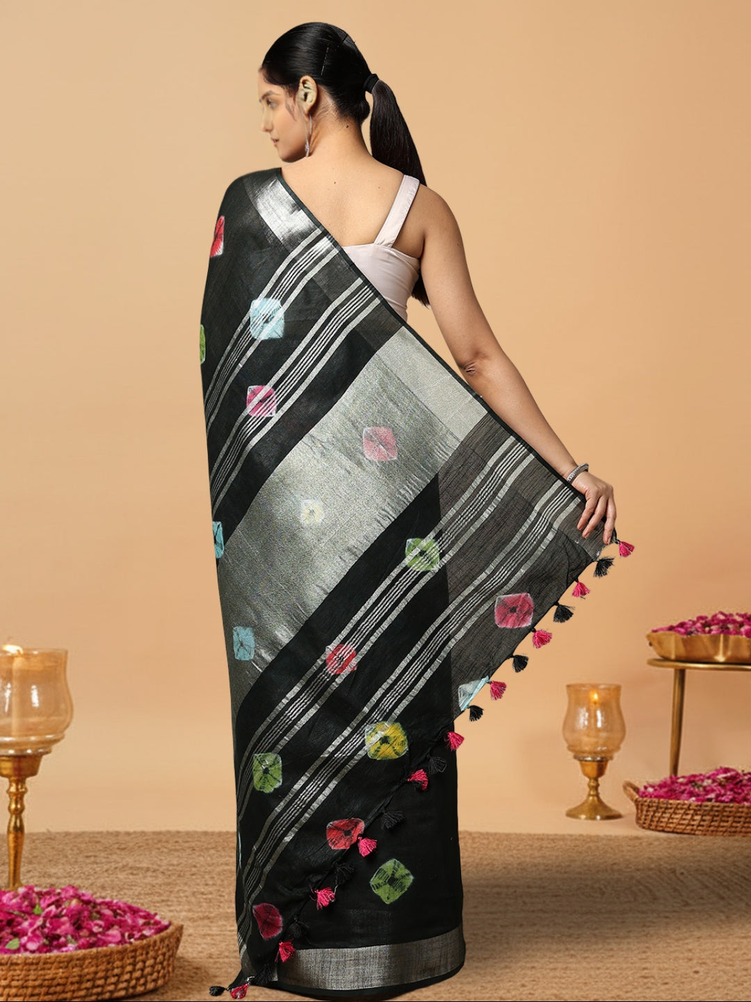 Slub Linen Sarees Shibori Hand Dyed,
