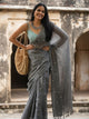 Gini work is a traditional hand embroidery technique featuring small, raised, textured stitches spread uniformly across the fabric. This creates a subtle, dotted pattern that adds depth, sophistication, and handcrafted charm to the saree.