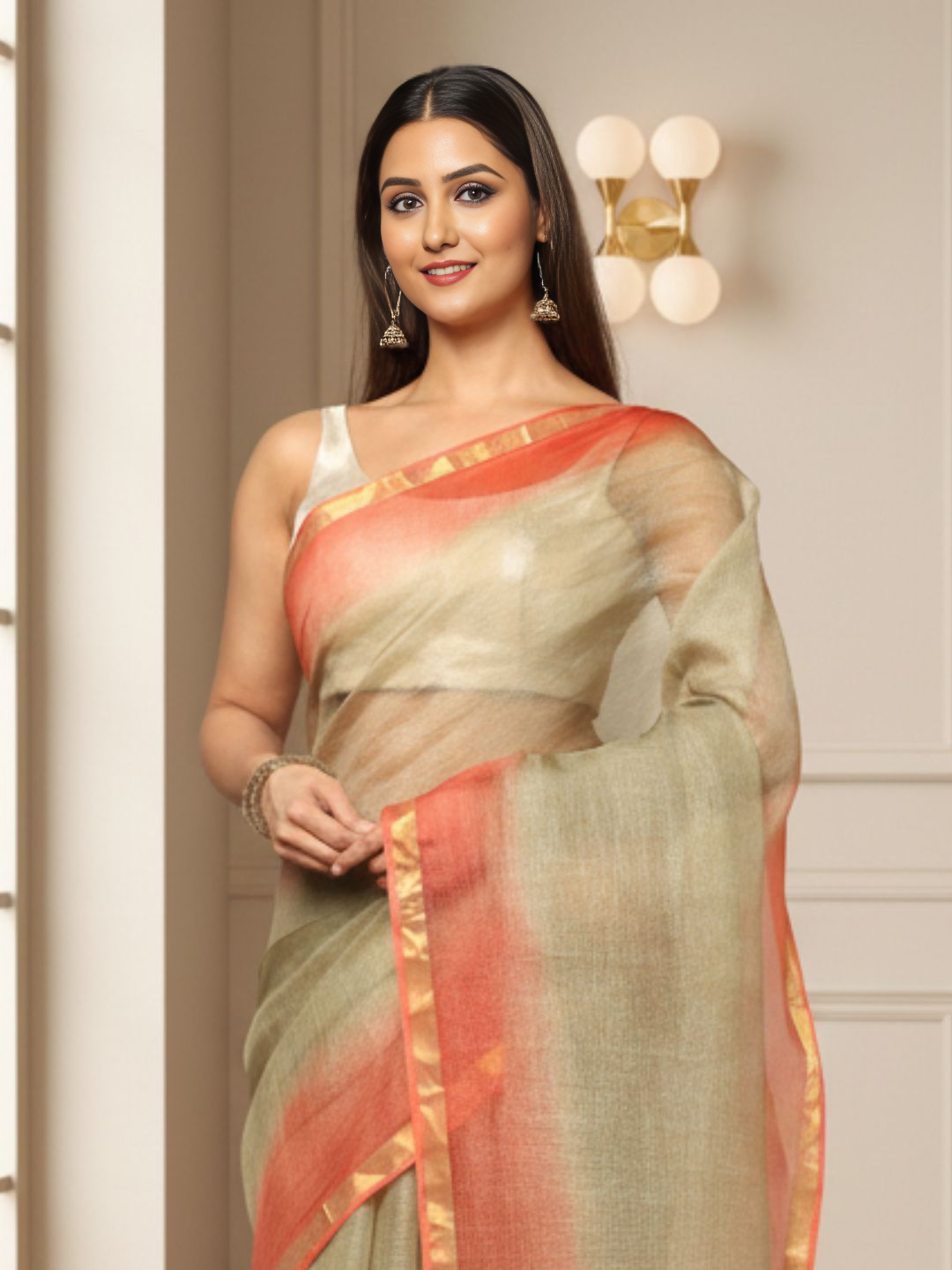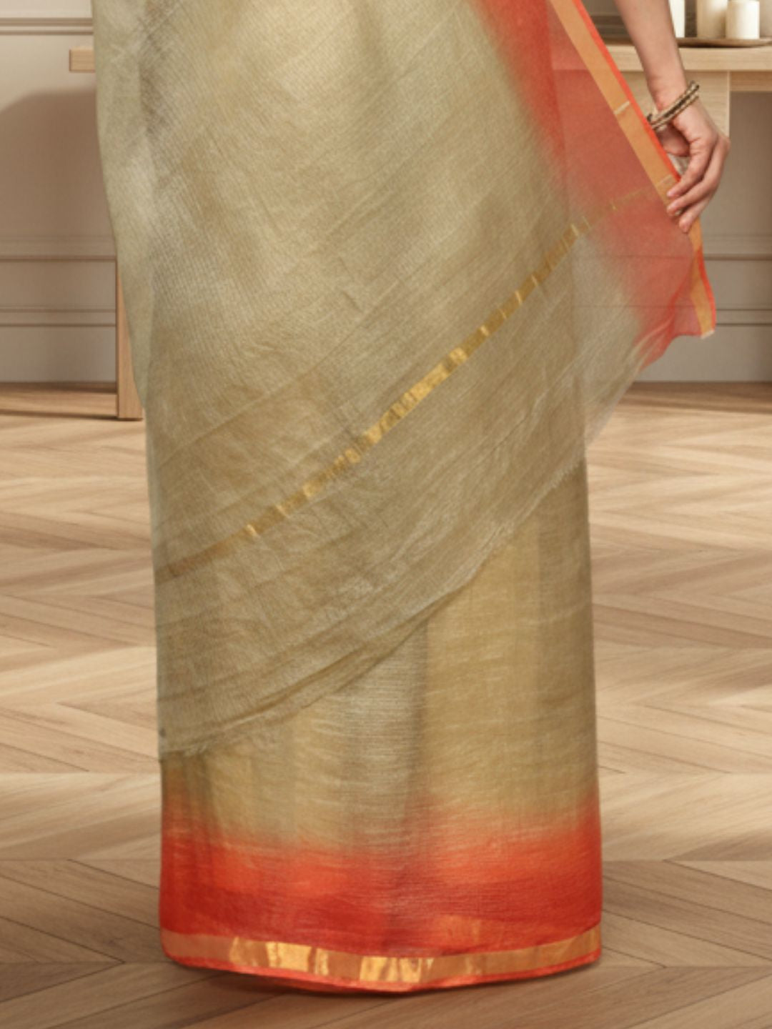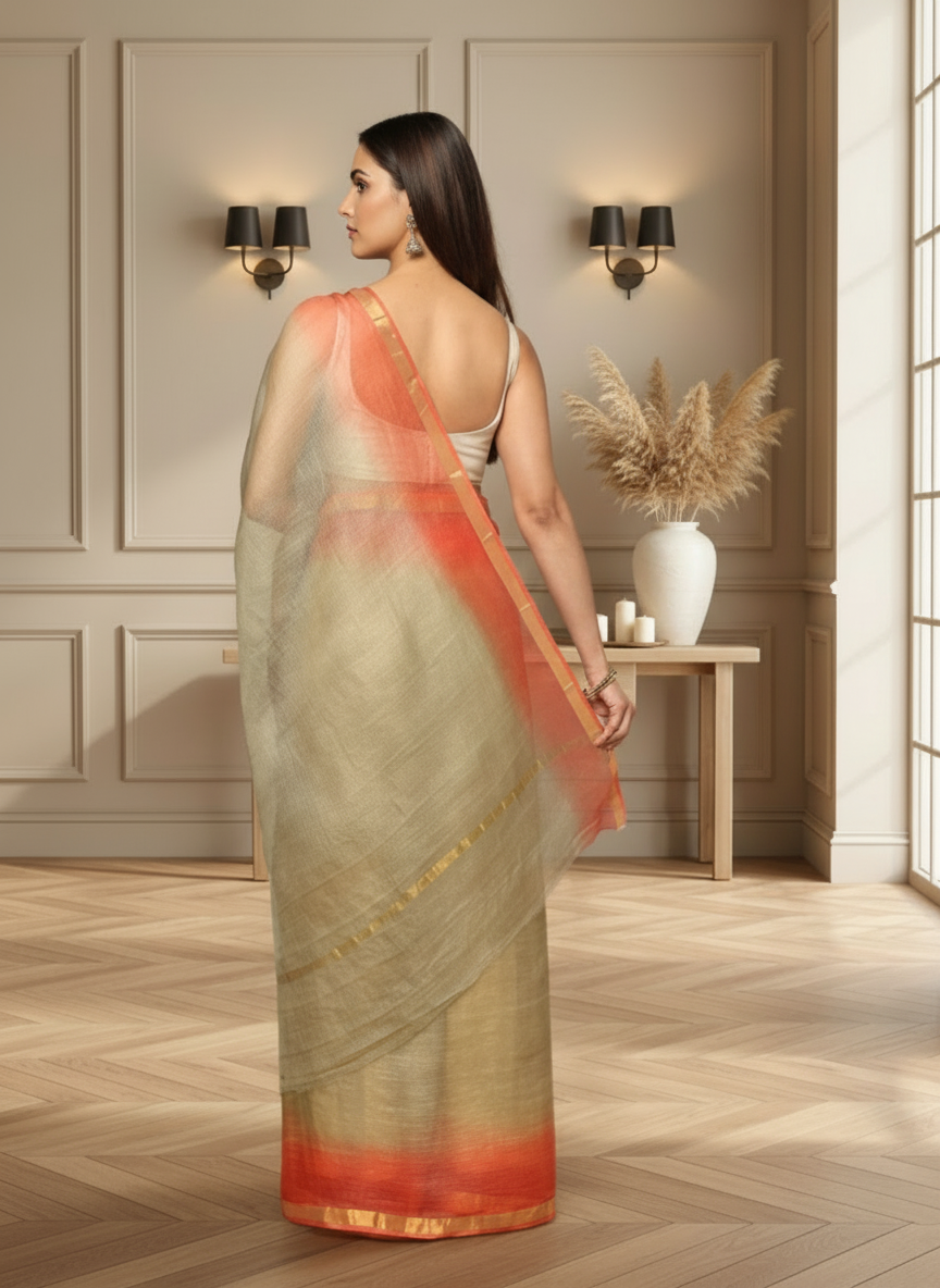 A Kota Doria Pure Silk Saree is prized for its delicate weave, soft feel, and elegant drape. The fabric is breathable and comfortable, making it ideal for warm climates and festive occasions.