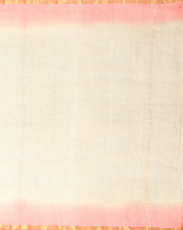 Luminous Silk Linen Embroidered Off White Saree