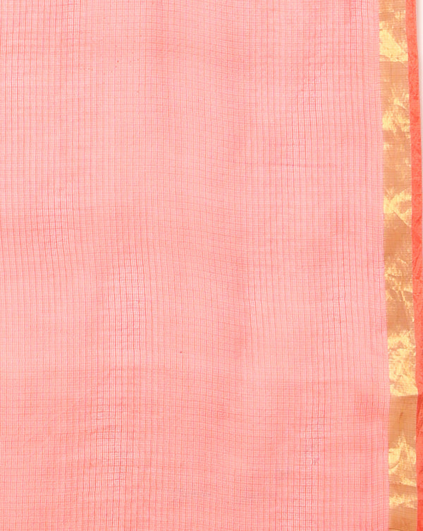 Deep Blush Pink Pure Silk Kota Doria Handdyed Saree