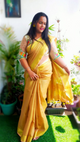 Melodic Handwoven Pure Linen Yellow Sare