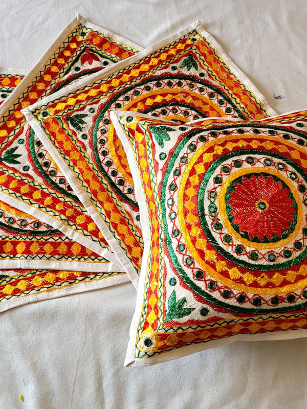 3. Are the Cotton Hand Embroidered Mirror Multicolor Cushion Covers handmade?
