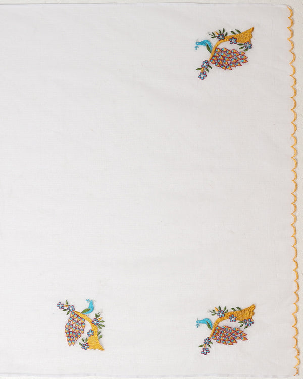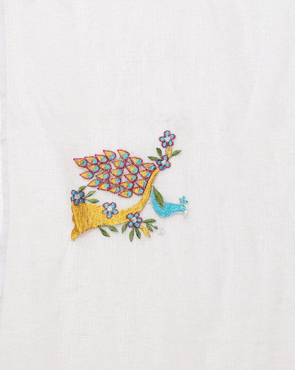 Luminous Silk Linen Embroidered Off Whit