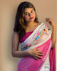 Serene Pure Linen Handloom Saree White & Red Embroidered