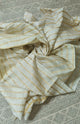 This saree is crafted using pure linen yarns on a handloom by skilled weavers. The intricate embroidery work is done manually, and the zari border and striped pallu are meticulously added to enhance its visual appeal.