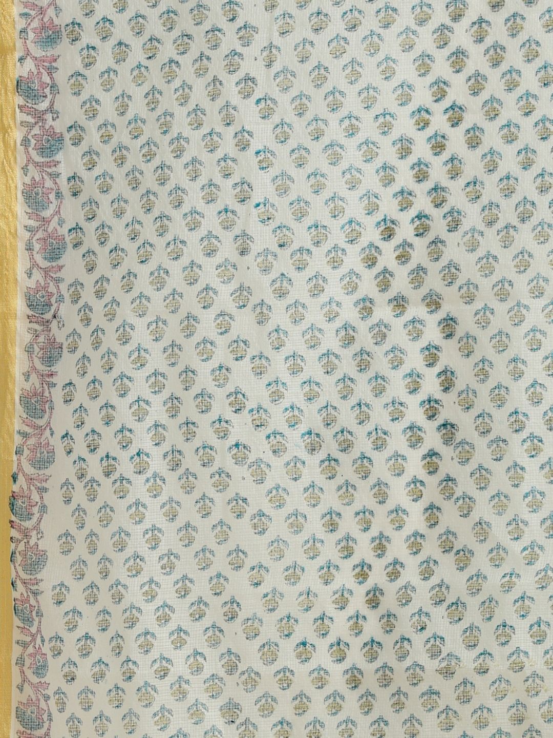 Pure cotton Kota Doria suit showcasing traditional hand block prints. Light, airy, and breathable, making it perfect for daily wear, festive gatherings, or relaxed occasions with understated ethnic charm.