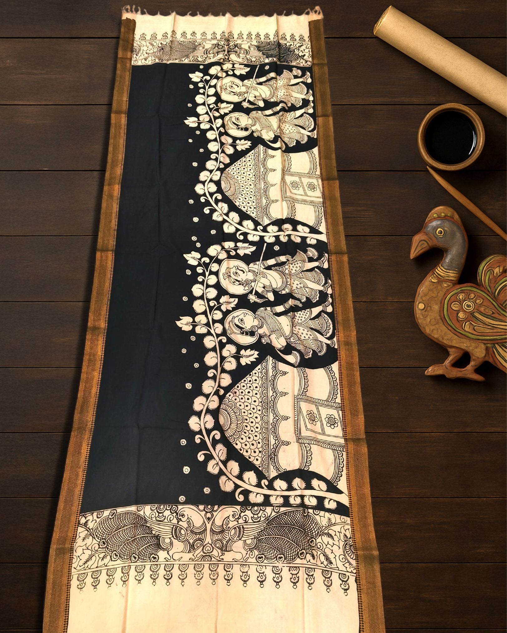 Syaahi Mangalagiri Silk Dupatta Jet Black & White