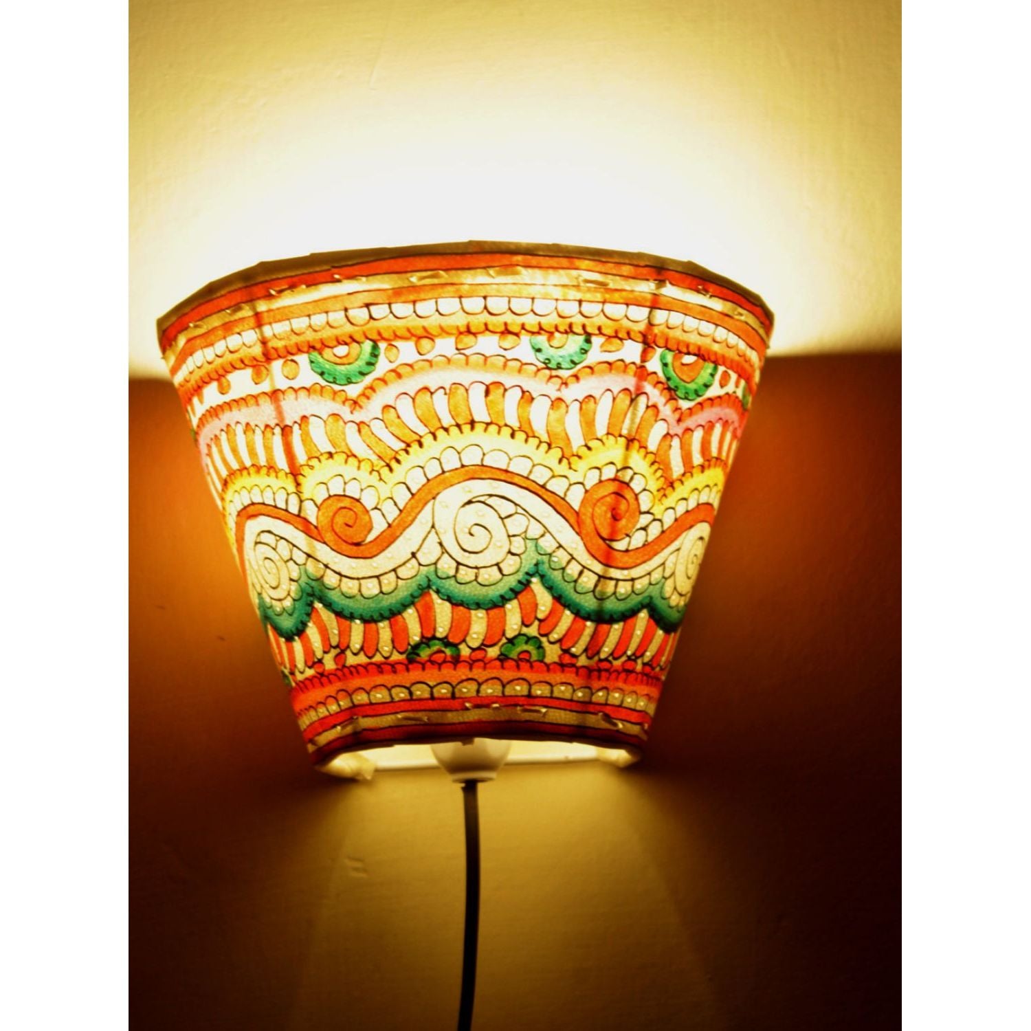 Material: LeatherWork: Kalamkari Hand painted perforationThe Photograph is of 5.5 Inches option.T... Read more