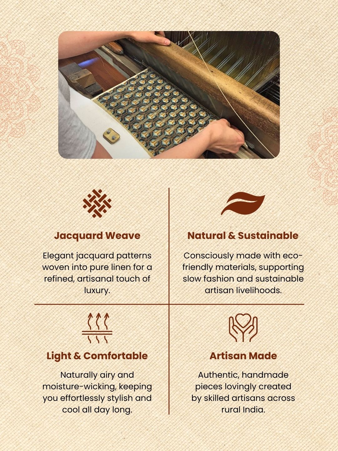 Elevate your ensemble with our Handcrafted Katan Silk Self Weaving Suit. Featuring self-weaving patterns on fine Katan silk fabric, each suit exudes elegance and sophistication, perfect for special events and celebrations.