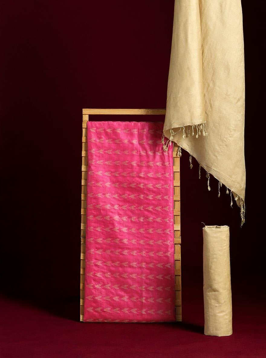 Katan Silk Suit Piece Weaving Design Buti Dupatta,