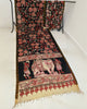 The Kalamkari handpainting is executed by skilled artisans using natural dyes and traditional techniques. Each design is meticulously hand-painted onto the pattu fabric, creating detailed, vibrant patterns that reflect the rich heritage of Kalamkari art.
