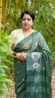 Nirmal Pure Khadi Cotton Sequin Saree Dark Green