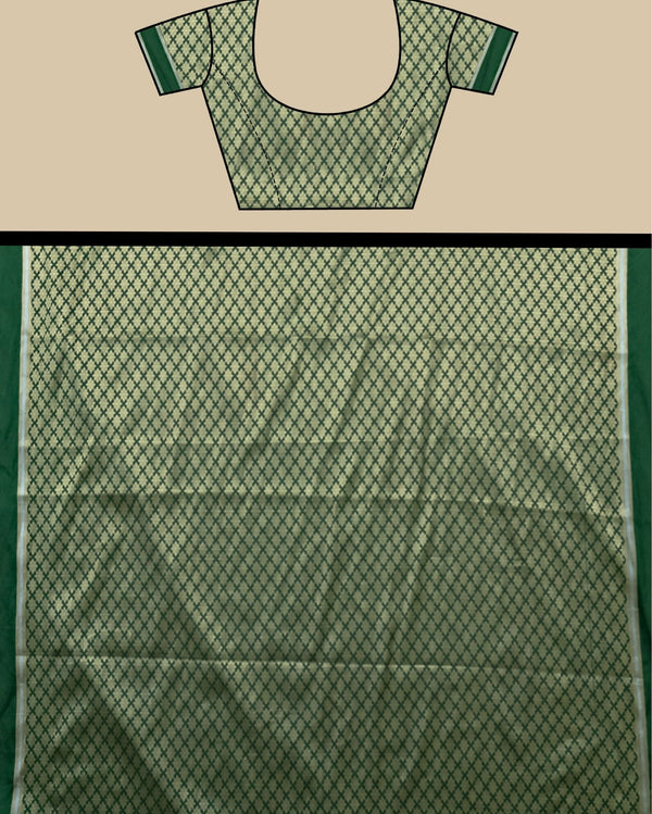 Dark Green Banarasi Brocade Raw Mango Silk Saree