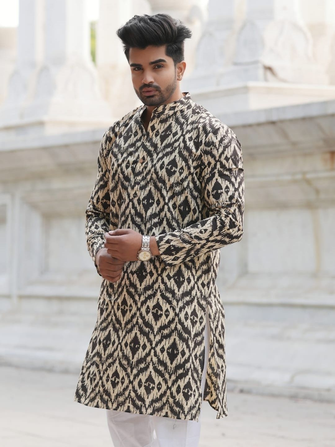 Cotton Designer Men'S Kurta Handblock Printed,
