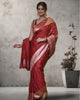 While it can be styled subtly, this saree is better suited for festive events, parties, or formal gatherings due to its zari detailing and rich texture. For daily wear, cotton or linen sarees may be more suitable.