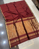 Joyful Maheshwari Handloom Pure Silk Saree Burgundy Red