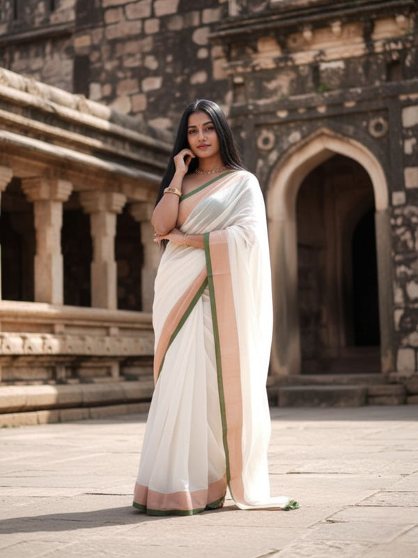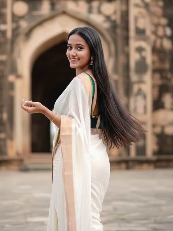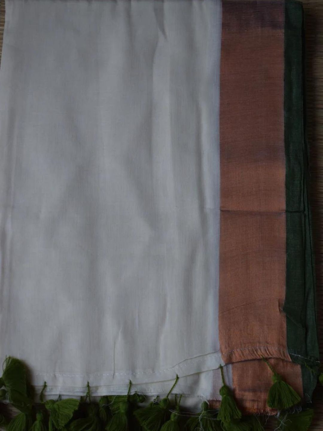 Baadal Baani White Pure Handloom Mul Cotton Saree