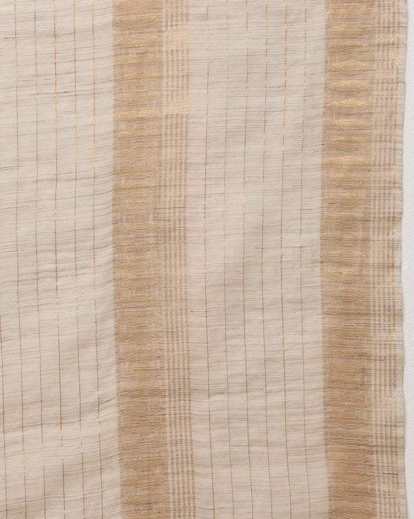 A Bansbara Silk Saree is crafted from high-quality silk fabric featuring a jacquard weave, which creates intricate patterns and textures. This saree is embellished with golden checks and enhanced with digital embroidery along the borders and pallu.