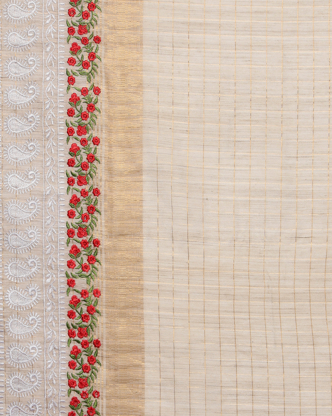 Hawa Hawai Half Embroidery Pure Cotton Saree Beige