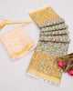 The Kota Doria Handblock Printed Saree set includes the saree and an unstitched blouse piece. The blouse fabric matches the saree's design and can be tailored according to the wearer's measurements.