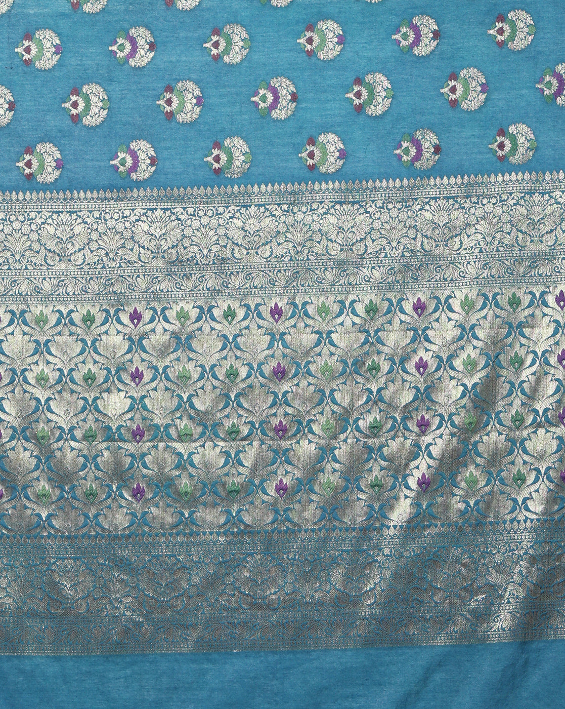 Silkmark Certified Banarasi Muga Tussar Blue Saree